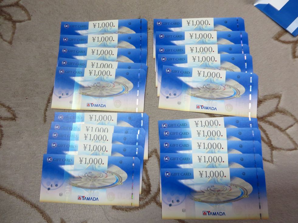 上記は、レジで精算した時にもらったUCギフトカードで、¥1,000券が20枚になりますので、¥20,000分です。