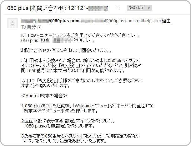 カスタマーセンターより、4・5時間後にメールで回答が届いていました。