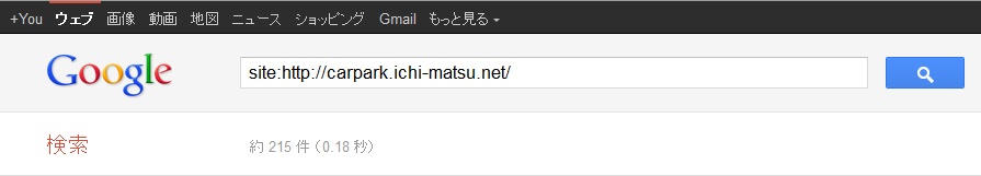 検索エンジンは、グーグル社がヤフーなど提携先にもデーターを供給しているので、直接グーグル検索に、半角英数入力キーのモードで、 site:http://http://carpark.ichi-matsu.net/ などのように、英語でサイト次にコロン、そして最後に調べたいWEBのURLを入力し、検索ボタンを押します。