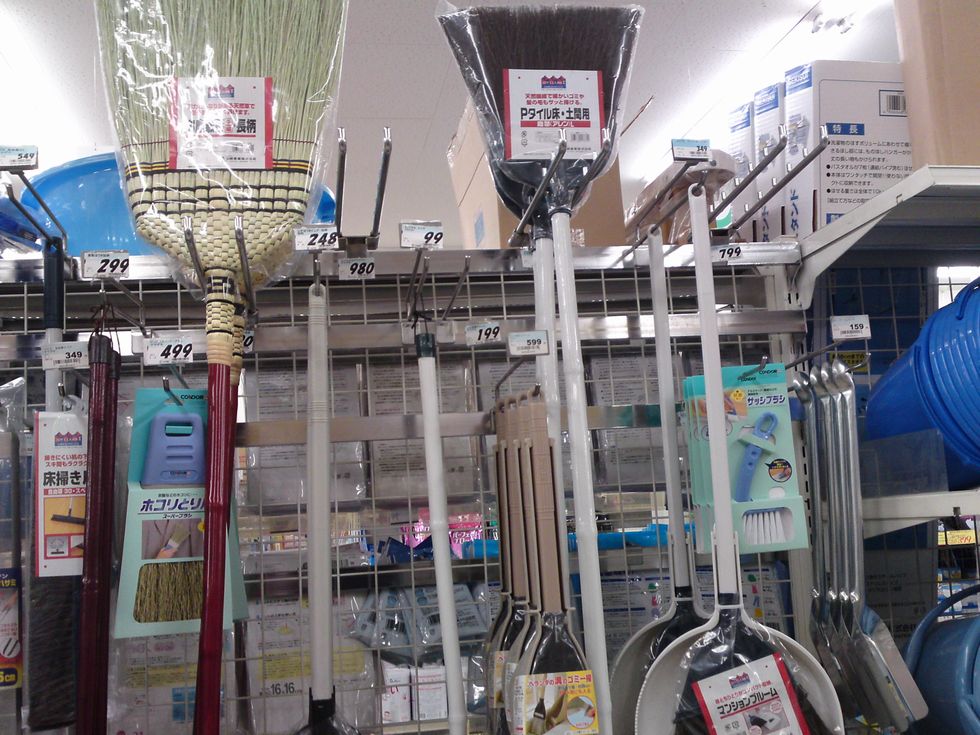 今日早速ルミエール箱崎店に買いに出かけたら、1本¥399のほうきが売っていましたので、自宅用と、駐車場用とで2本買ってしまいました。