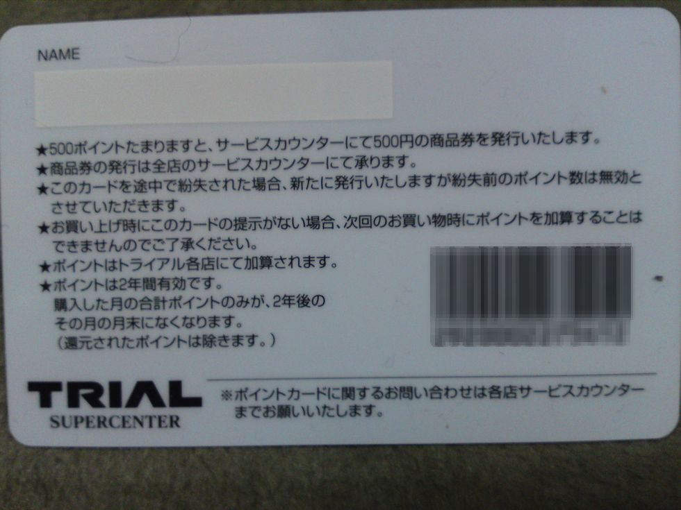 上記が、トライアル福岡空港店で作ったポイントカードの裏面の写真です。