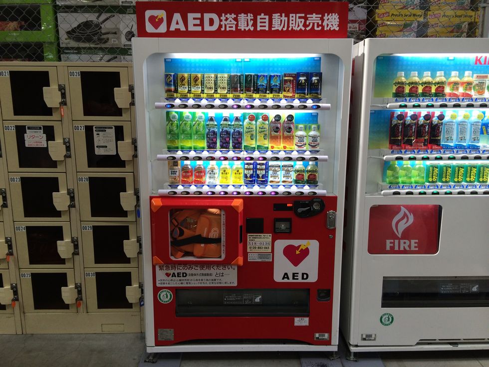 上記はレジ付近の自販機の写真ですが、AED内蔵でした。