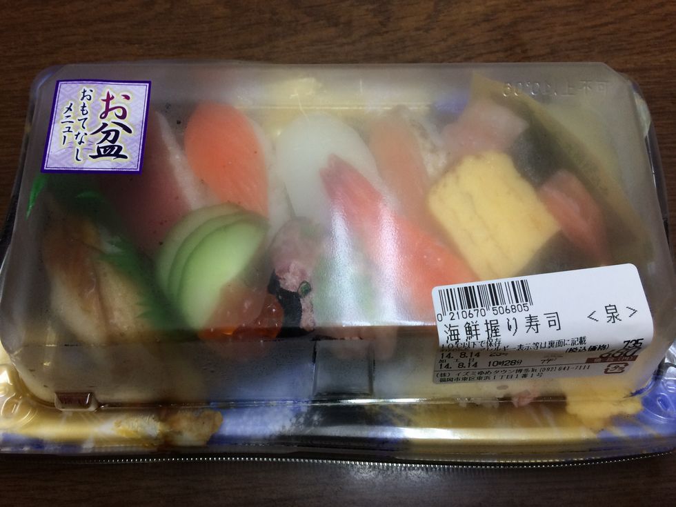 ゆめタウンも割りと近いので便利に感じますが、上記のお寿司セットで¥750くらいでした。