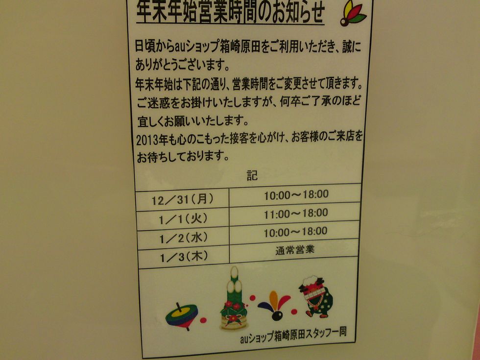 カウンター横には、年末年始の営業時間案内が貼ってありました。