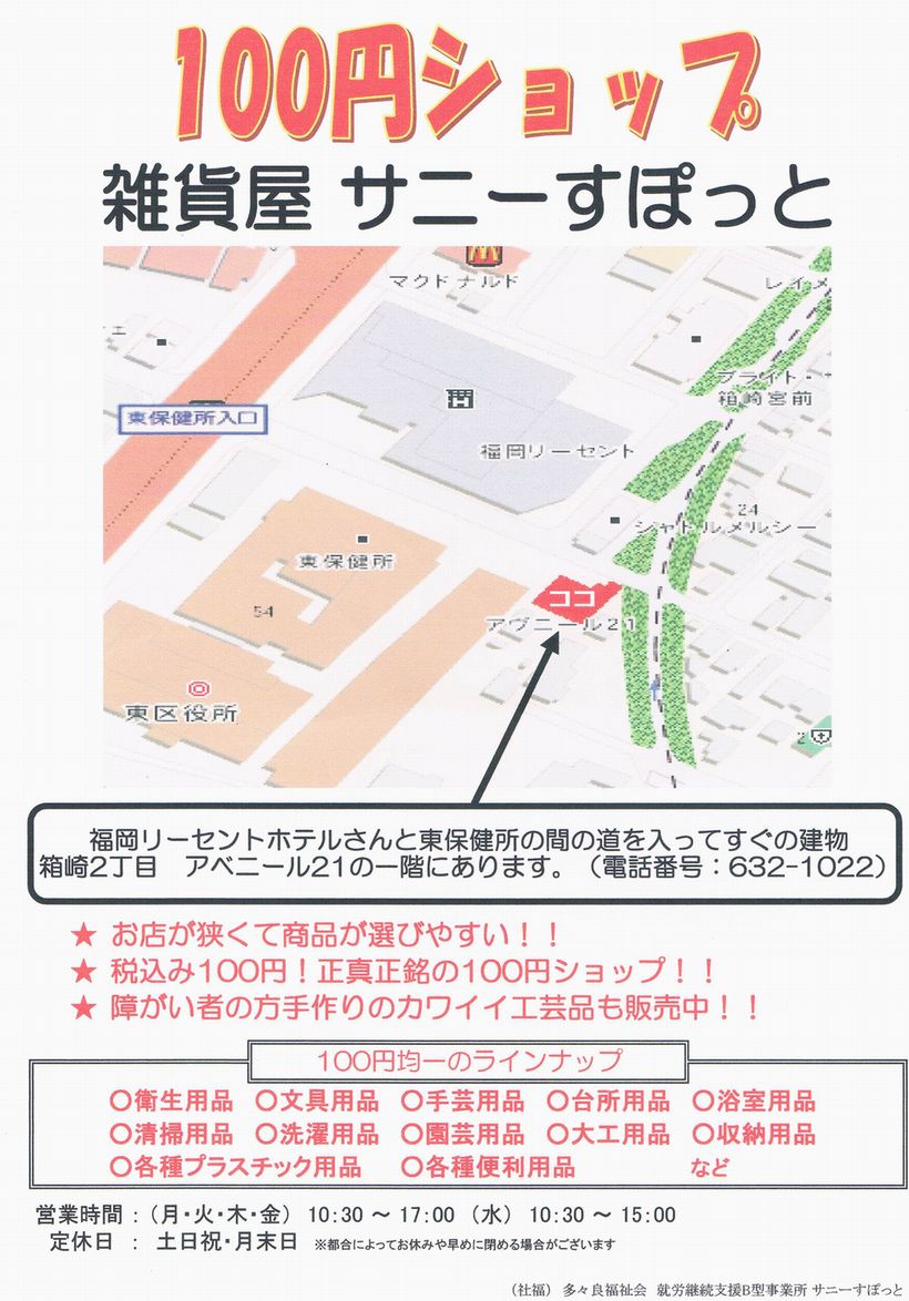 箱崎の100円ショップ 雑貨屋サニーすぽっと