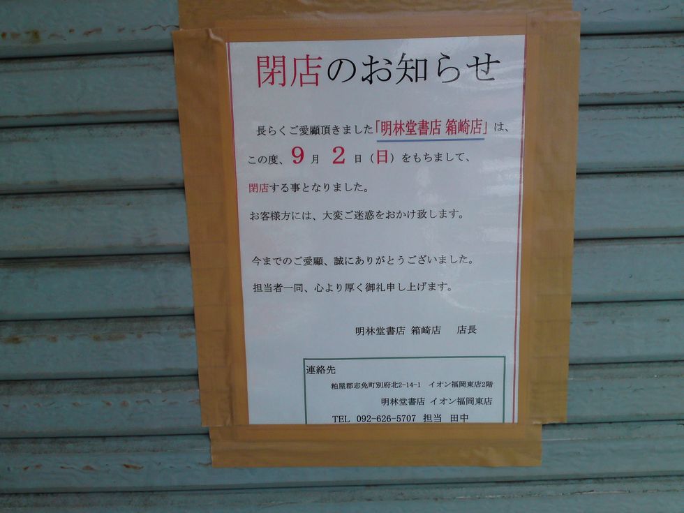 上記は、昨日の最後の営業日9月2日の明林堂箱崎店の写真です。
