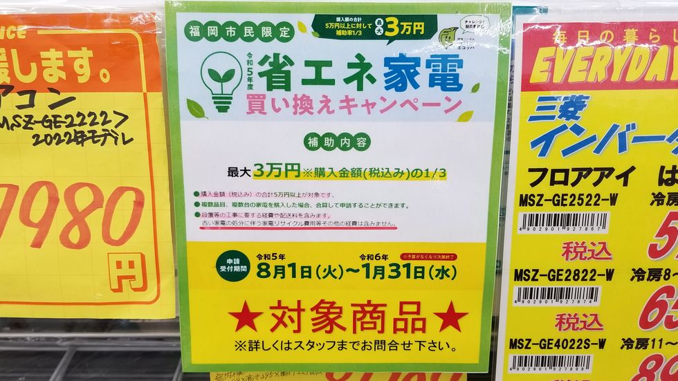 福岡市でエアコンや冷蔵庫の買い替えで補助金キャンペーン開催