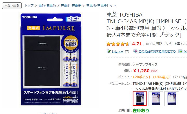 ニッケル水素充電池は、エネループなどが有名だったりしますが、東芝も製造しています。
