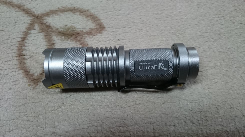 そんな時、インターネットで見たのは、「10cm弱のコンパクトなボディに、200ルーメンという明るさです。LED素子は世界屈指のCREE社製。防水機能もあり、いざという時の護身用になります」 と書いてありました。