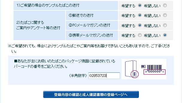 なんでもこのサイトに登録しておくと、3ヶ月くらいに1度くらいの割合で、新発売のタバコが送られてくるのだそうです。