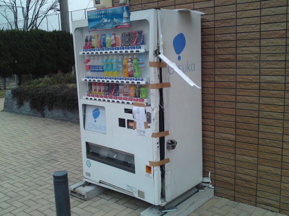 福岡市の月極駐車場から近い汐井球場の 自動販売機が壊れていました。