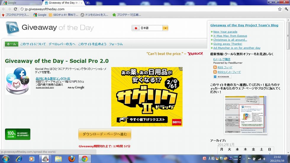 このサイトは、市販されているアプリケーションソフトを24時間限定の日替わりで、無償ダウンロードができるという宣伝目的のプレゼント会場になります。