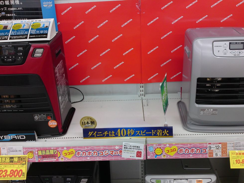 石油ファンヒーターが白煙を黙々とあげたということで、 急きょ管理人は新しいもの買いに出かけました。