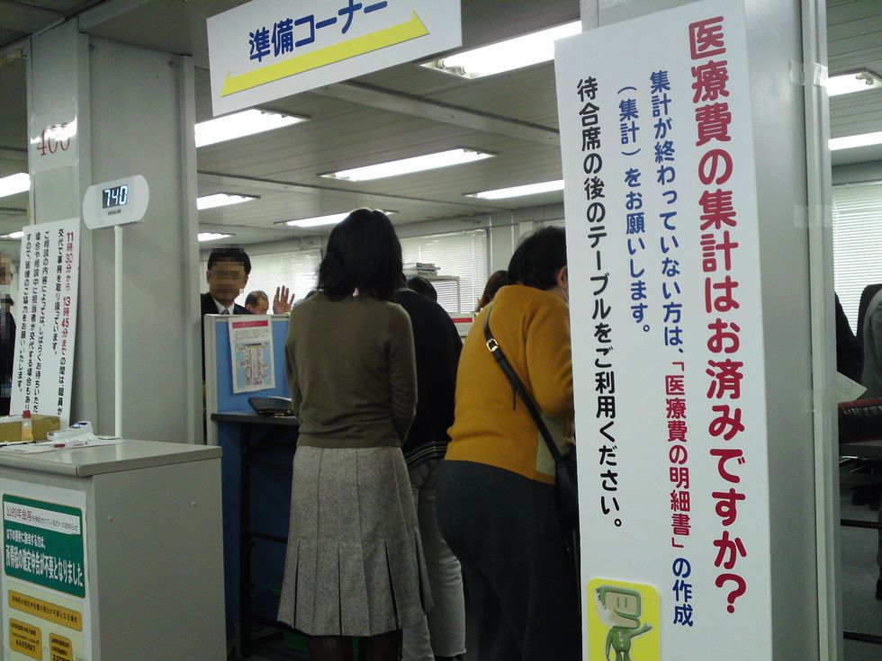 受付に行くと、「はい、これです」 と一式書類を渡され、約100人待ちで50分かかりました。
