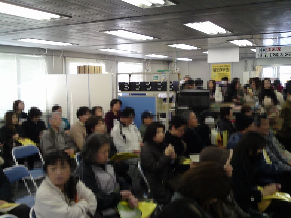 上記が香椎税務署の待合室の様子です。 確定申告は3月15日までですので、もう午後はたくさんの待ち時間が必要です。