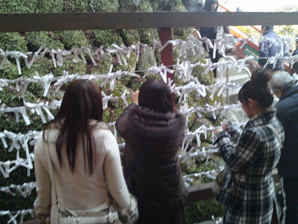200円のお守り入りのおみくじを買った後、ここでおみくじを縛ってから、階段を下りて下に向かいます。