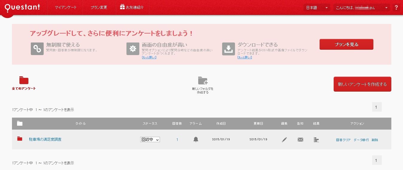 私の場合、ウェブサイト系の面白ネタという事で人に教えてもらい、無料会員に登録し、その後5分ほどで1つのアンケートを作れました。