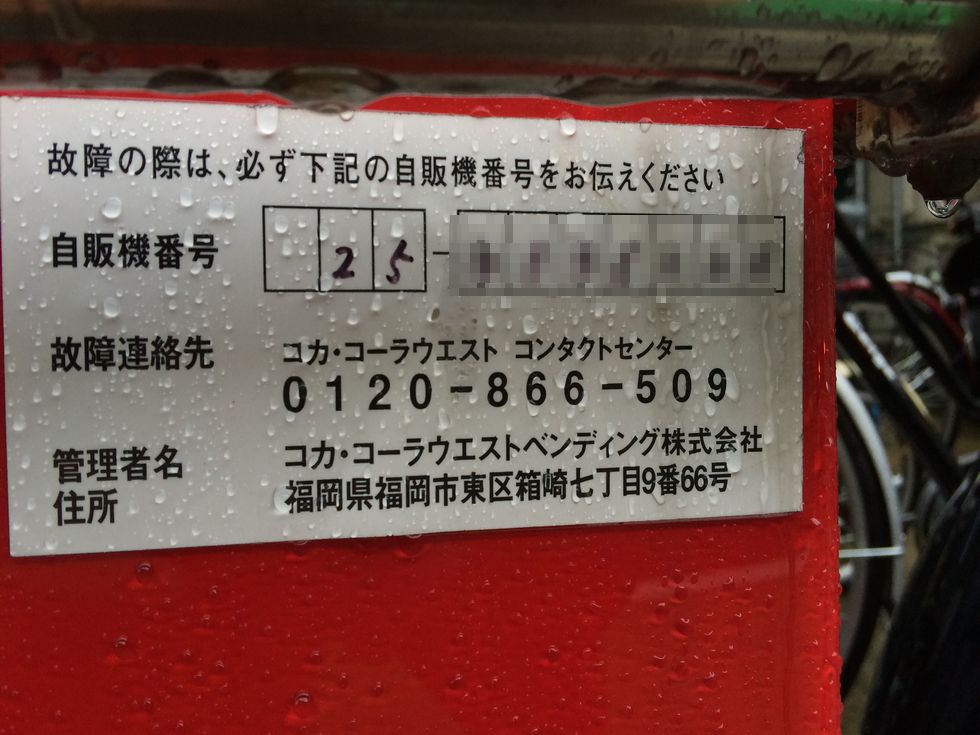 自販機に記載されている0120で始まるフリーダイヤルのコカ・コーラコンタクトセンターに電話をした。