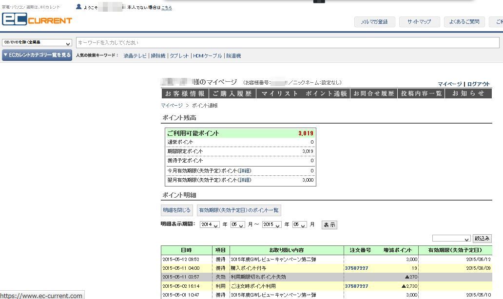 上記が、ECカレントのポイント明細の画像です。