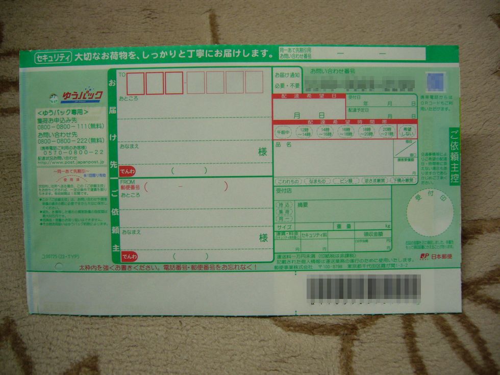 この伝票をまず郵便局でもらい、荷物60サイズなどに梱包し、郵便局へ持ち込みます。