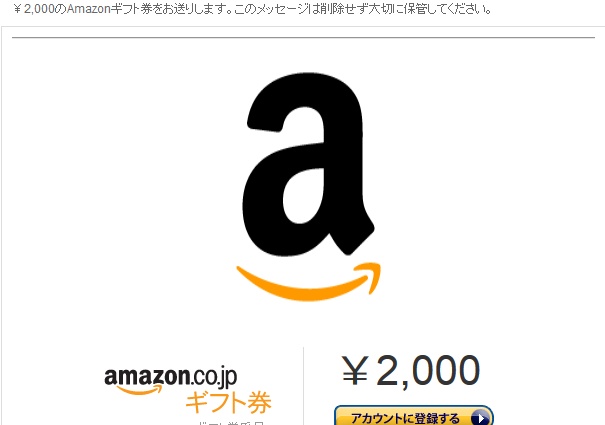 上記がもらったアマゾンのギフト券です。重要なコード箇所は省いています。