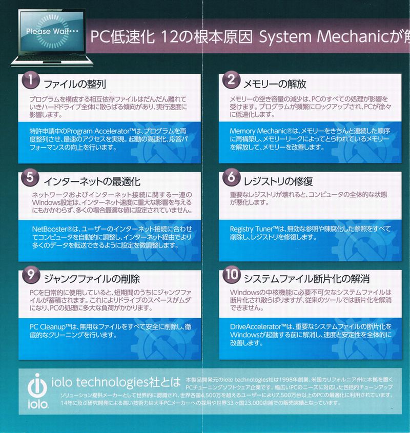 ioloという会社の製品らしいのですが、System Mechanic(システムメカニック)というパソコンを全自動でメンテナンスするというソフトを買いました。