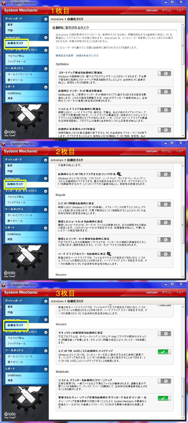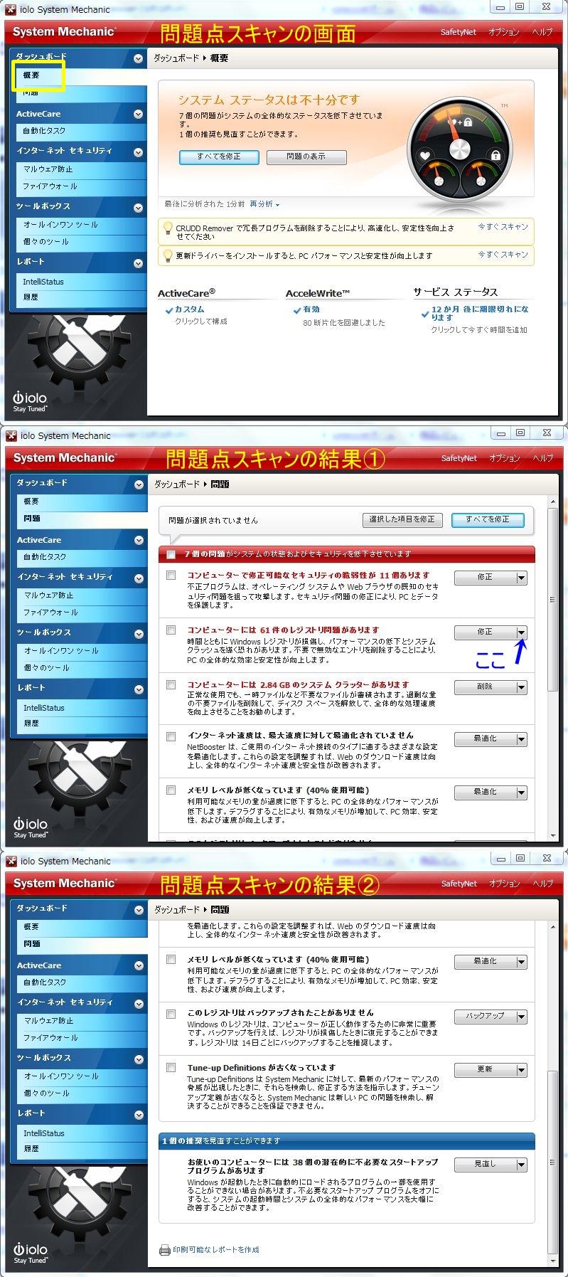 使い方その他に関しては、iolo System Mechanicの使用体験レビュー記事 などを参考にされてください。