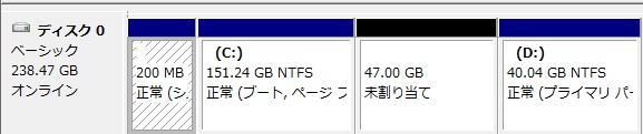 そうすると、150GBまで減り、隣が未割り当て分47GBとなります。