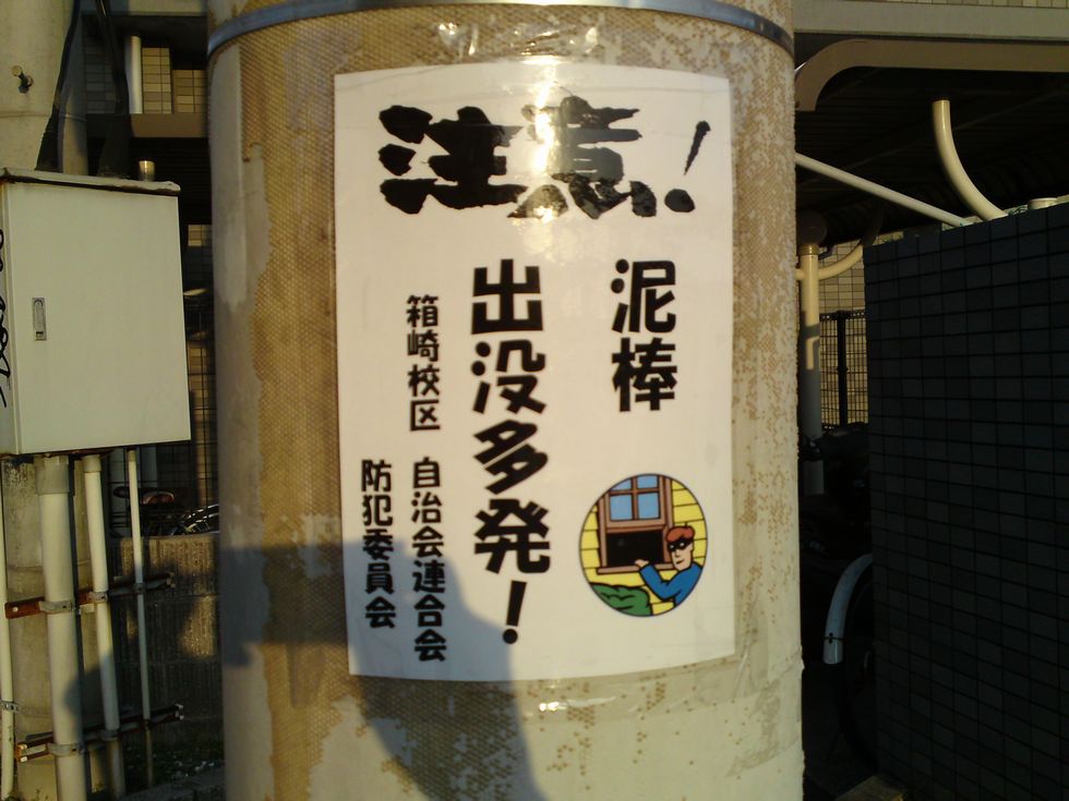 いつからなのか? が少し不明となってしまうのですが、最近箱崎地区を歩いていると、電柱に上記の警鐘張り紙をよく目にします。