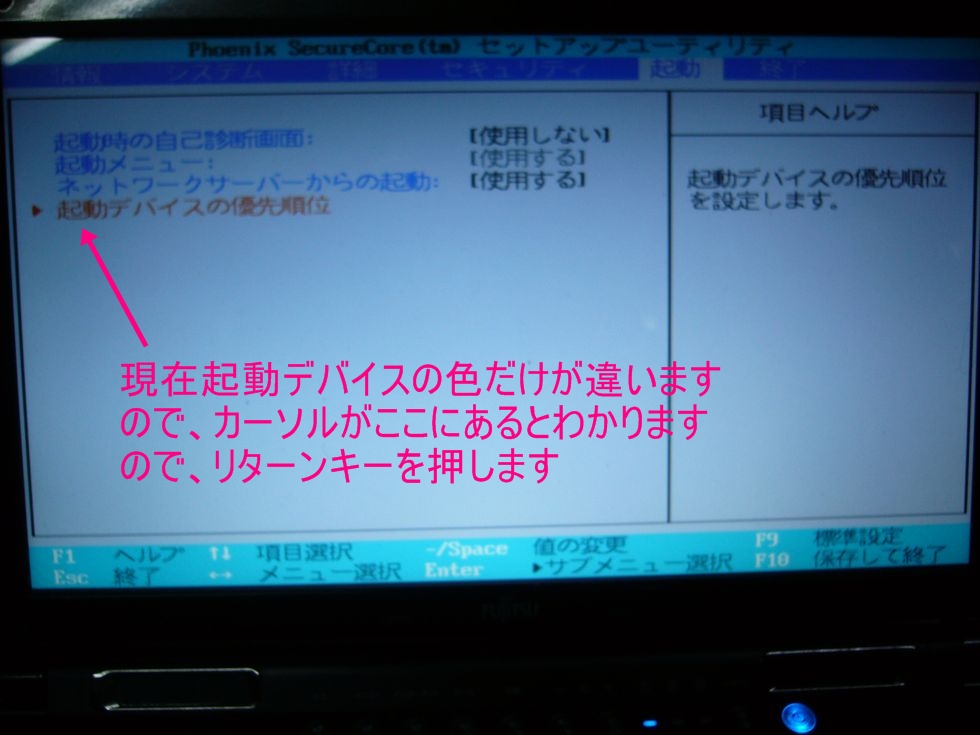 ウィンドウズ7のノートPCで、起動の優先順位を変える