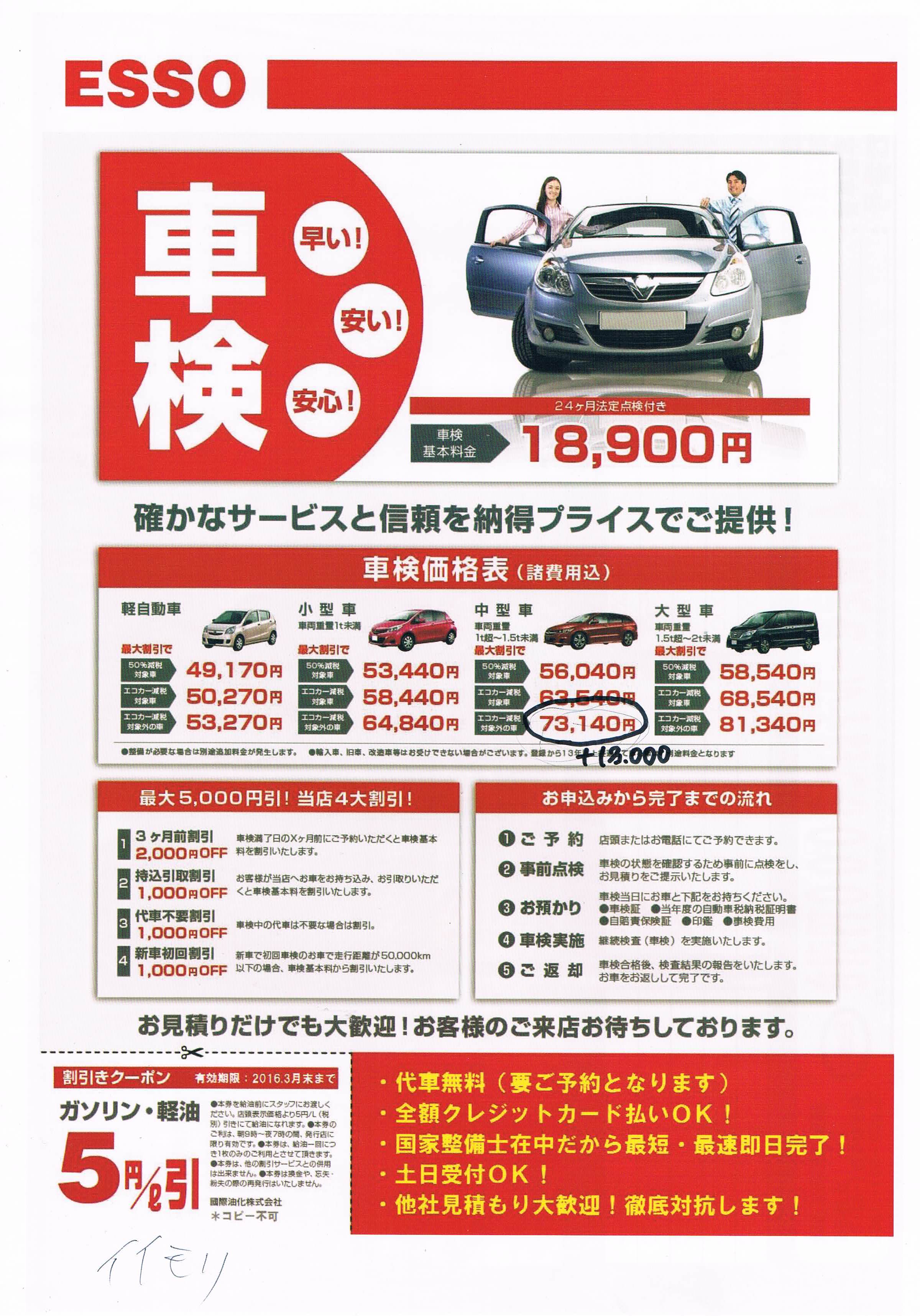 上記のチラシは、某GSでいただいた車検の案内のものです。