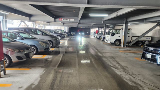 ボックスタウン箱崎の立体自走式お客様駐車場の2階に駐車した写真です。