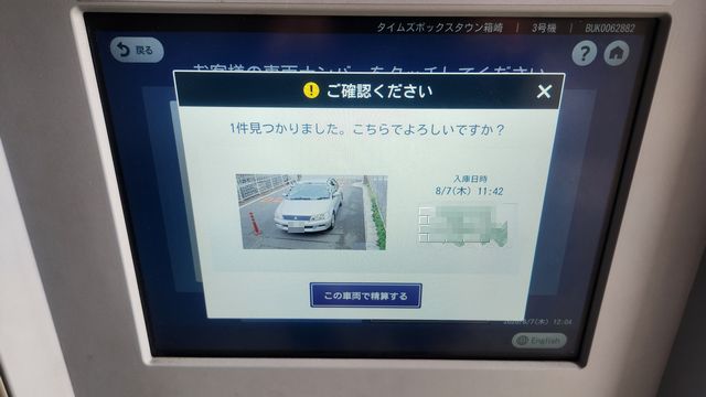 ボックスタウン箱崎の出庫精算で以前は後方から撮影された写真だったのが今年前からの写真に変わりました。