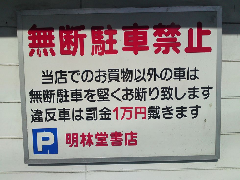 上記が、福岡市の月極駐車場のそばにある明林堂書店の、駐車場利用ガイドの看板になります。