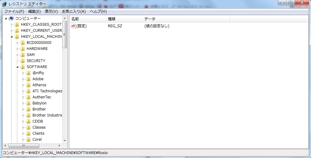 左サイドバーメニューの中に、HKEY_LOCAL_MACHINE というものをまずみつけけ、白抜きの三角マークをクリックしますと、その下層に隠れているツリーが展開します。