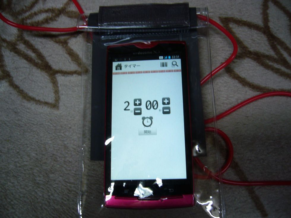 上記は、防水タイプのスマートフォンですが、防水ケースに入れた写真です。 科学的にやった方が無理もしないと思いますので、タイマーを用意した方がお勧めになります。