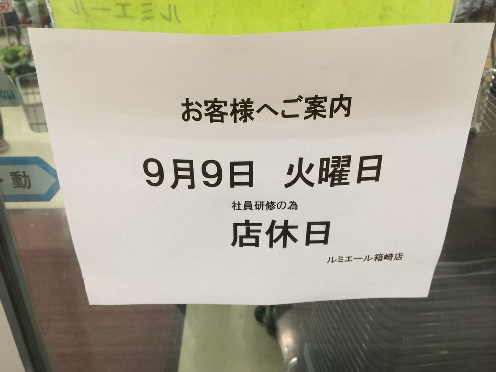 9月9日はルミエールが店休日