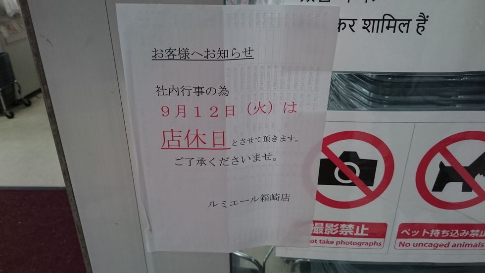9月12日は、社内行事の為にお休みします~というルミエールの告知です。