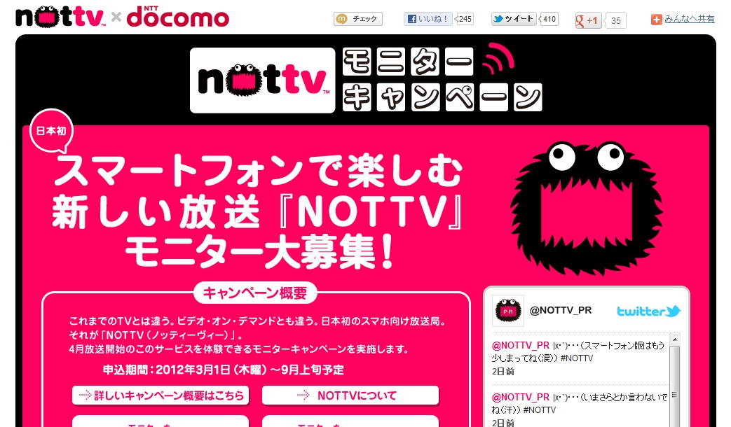 思いますが、NOTTVキャンペーンが面白いそうです。
