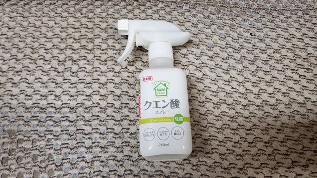 一般的には、清掃用はクエン酸濃度3%くらいに調整されてあるので、粉末を買ってきてスプレーボトルに入れて、水を入れてと自作して5%とかにした方が効果があるといわれています。