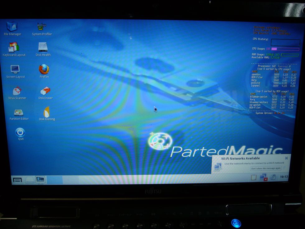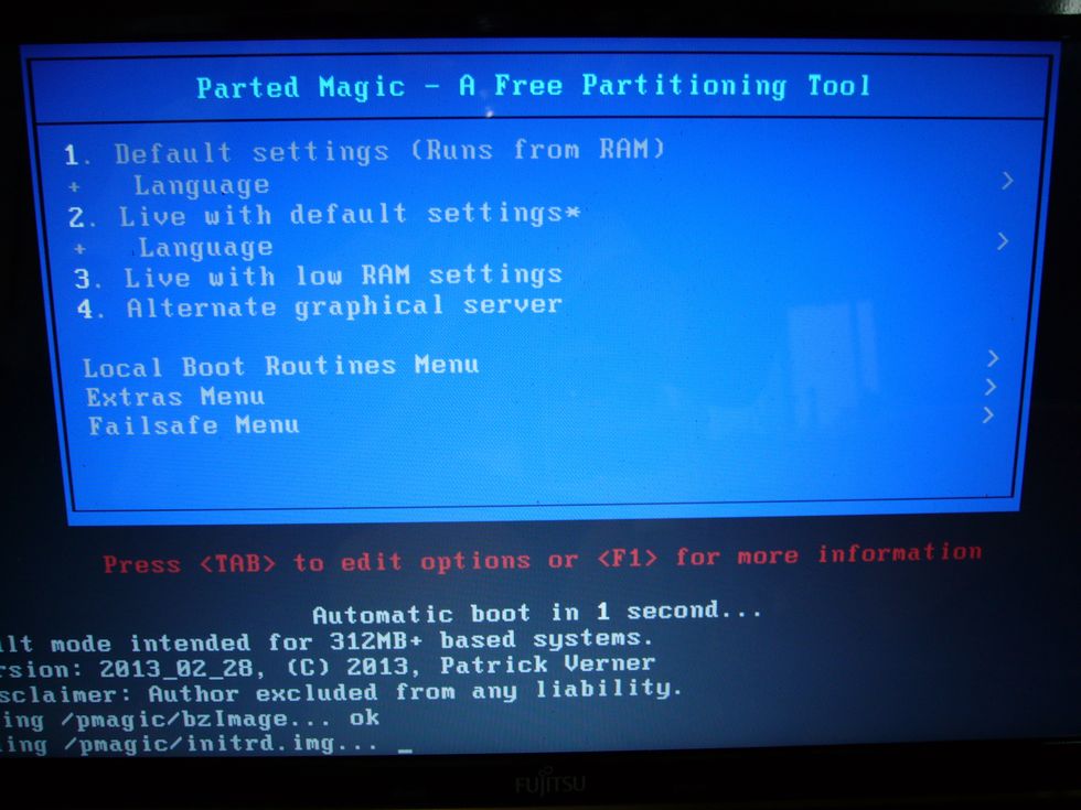 オートマティックブートと書かれてありますので、そのまま放置しますと6分ほどでリナックスのOSであるParted Magic が下記の写真のように自動で起動します。