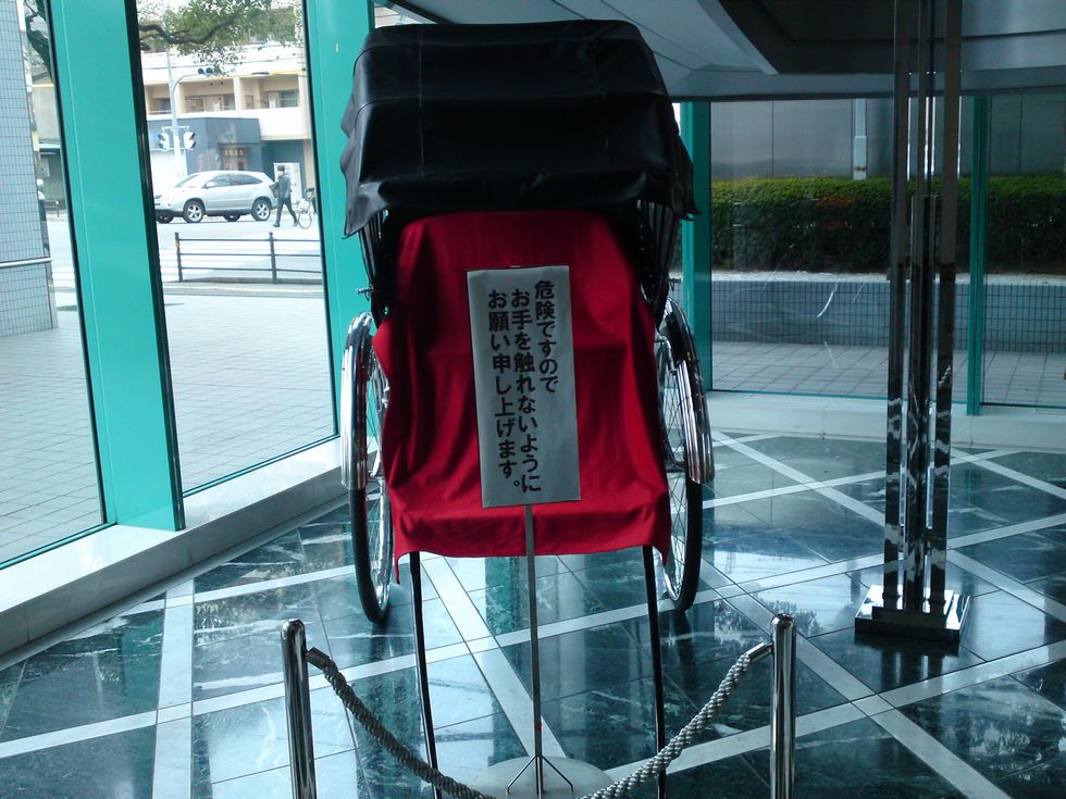 入り口から入って左側にある螺旋階段の前に人力車が展示されてありました。