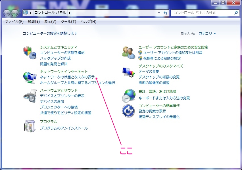 パソコンのスタート画面より<コントロールパネル>を選択します。