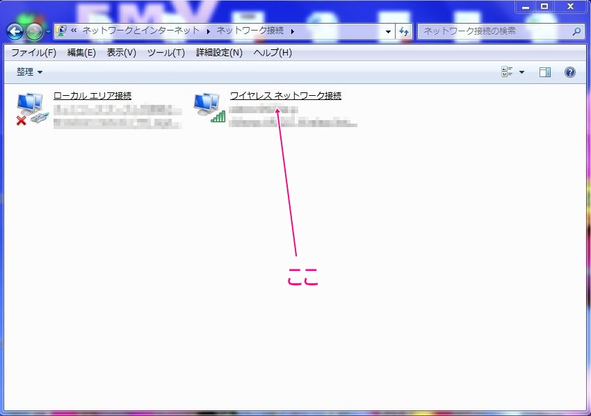 <ワイヤレスネットワーク>の方をクリックします。通常はここにWiMAXの機器名が表示されています。
