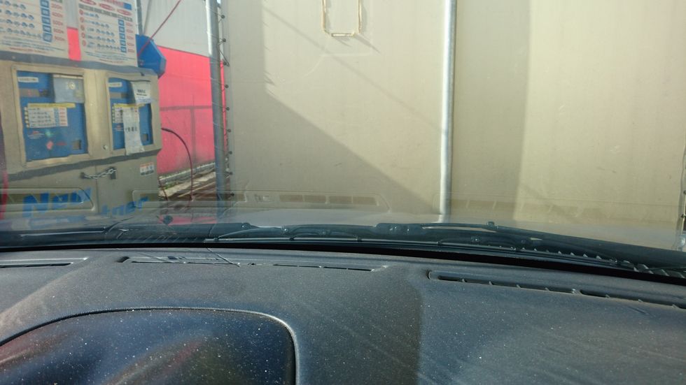 上記は、GSから帰る途中で立ち寄ったコイン洗車場で洗車した後にスマホで車内から撮影した写真です。