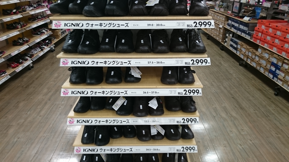 上記が、2階スポーツデポのシューズコーナーで売っている、¥3,000のウォーキングシューズです。