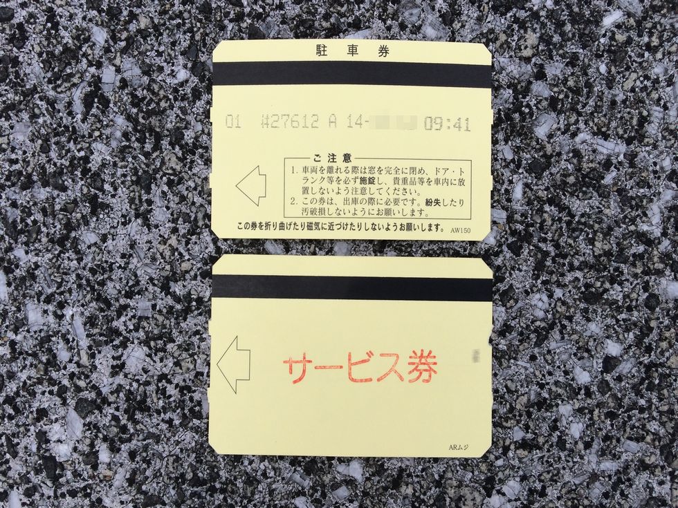 サービス券は、1階の会計カウンターでもらえ、指定駐車場では2時間まで無料です。